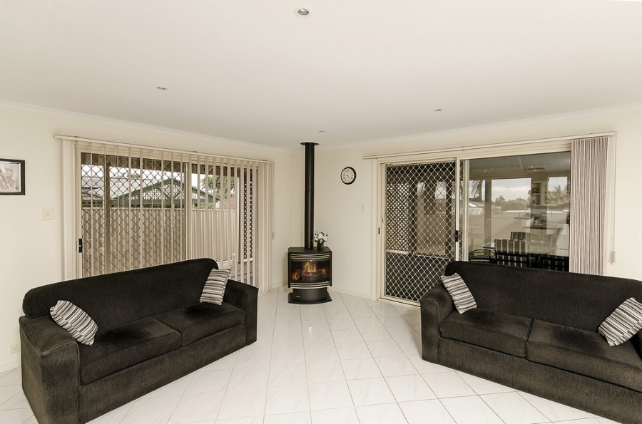 Offering a large formal lounge this courtyard home also boasts a family room adjacent the kitchen and dining space in the modern style.