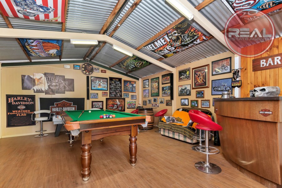 Ample storage is provided via the garden shed. Whilst the workshop may prove perfect for hobbies of any kind but car and bike lovers will certainly find much to like in the way that the workshop opens through to the rumpus/man cave with air conditioning which will prove popular with anyone seeking extra space to congregate.