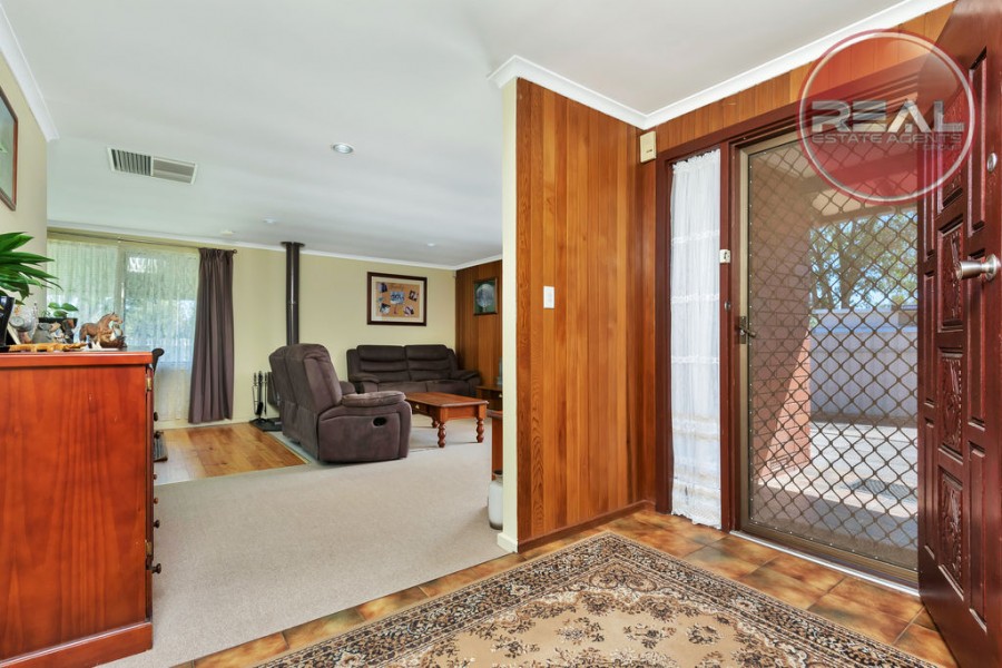 Before we even step inside there is so much value on offer. From the 8 panel solar panels boasting a 52c feed-in tariff that is transferrable to the incoming purchaser, this property further boasts outdoor entertaining you will adore and a traditional Aussie yard resplendent in fruit trees, mature plantings and enough lawn area for kid and pets to play.