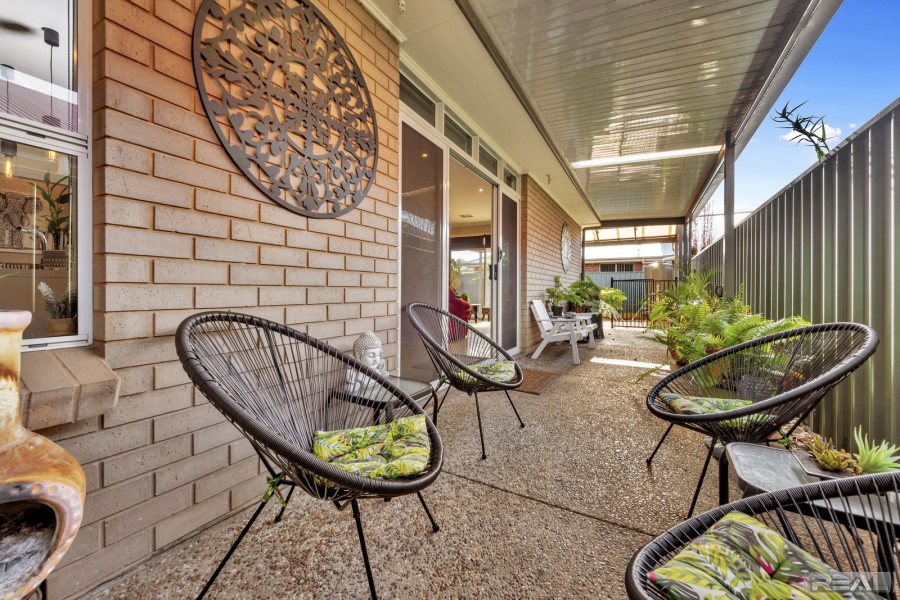 Outside feature concrete unfurls around the home from the double driveway through to the casual entertaining nook.