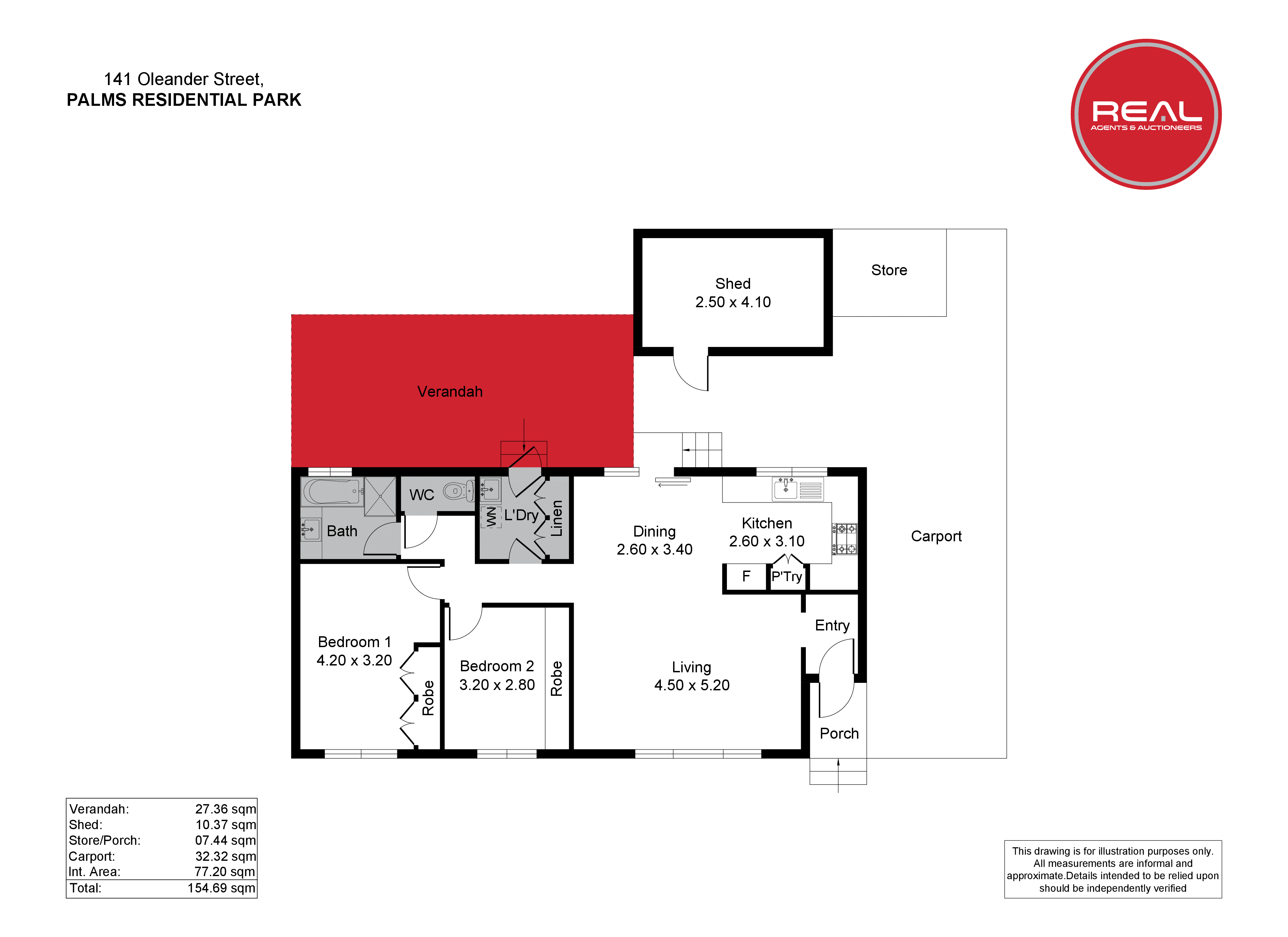 - Carport with parking for two cars.