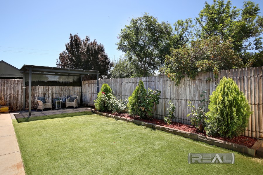 Outdoor living is well catered for with a tiled side entertaining area under the main roof, complete with ceiling fan, pull-down blinds, and provision for a television with antenna outlet and plumbed as for the BBQ -making it a practical space all year round. Bamboo fence panelling and a calming feature display create the perfect environment to unwind. Concrete pathways surround the home, complemented by sculpted garden beds. A rear pergola and Colourbond garden shed with paving provide valuable additional storage.