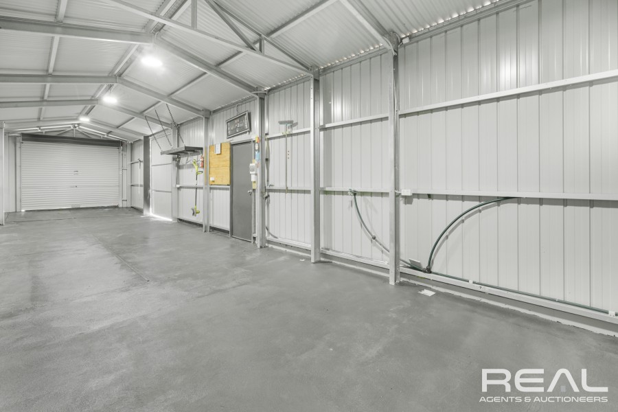 Mouth watering bathroom has floor to ceiling tiles, even the laundry will impress with its storage and space. Outside begins with established rendered frontage and parking area, the side roller door (auto) direct access to a seriously impressive shed that all lucky enough to view will be hugely impressed as it will suit many may needs.