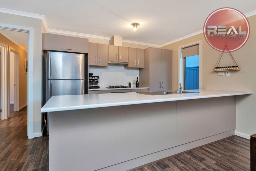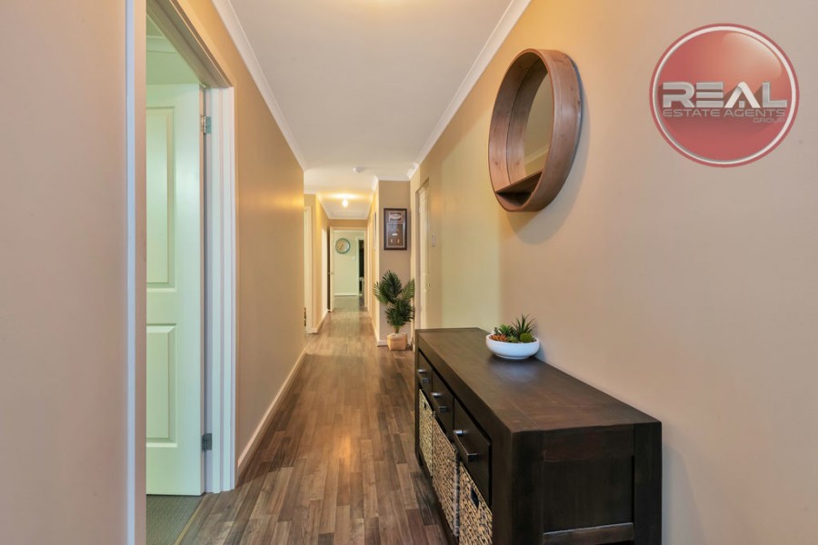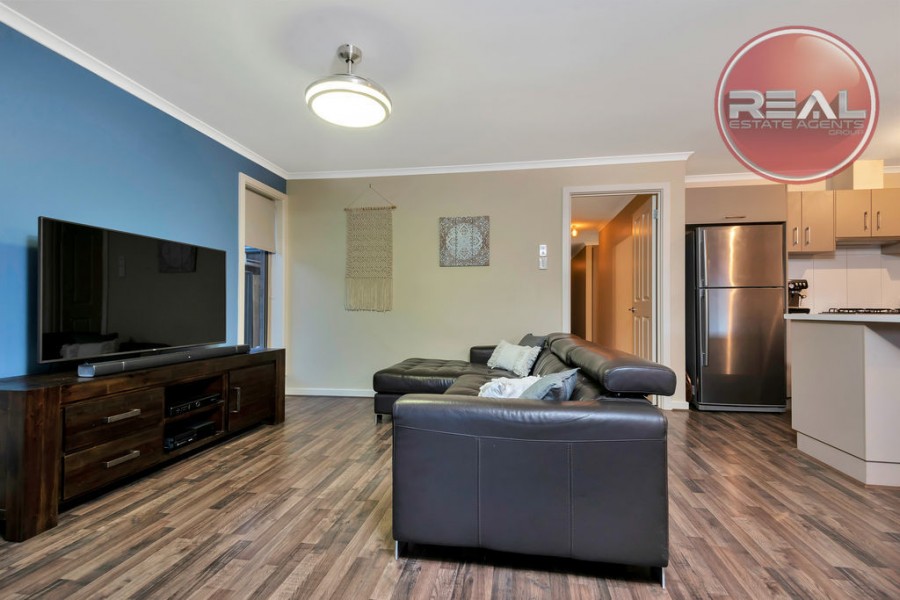 Hard flooring greets you at the front door and flows throughout the passageway spilling out into the main living area to the rear of the casual living area so it is practical, attractive and easy to keep clean making it perfect for couples and young families.