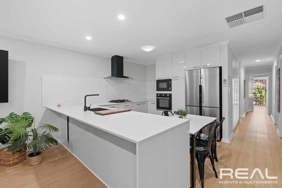 Open Plan Kitchen and Living Area is beautifully designed with ample bench space, quality appliances, and a layout that encourages family connection and entertaining, this area is sure to impress. The home is fully equipped with heating & cooling throughout.