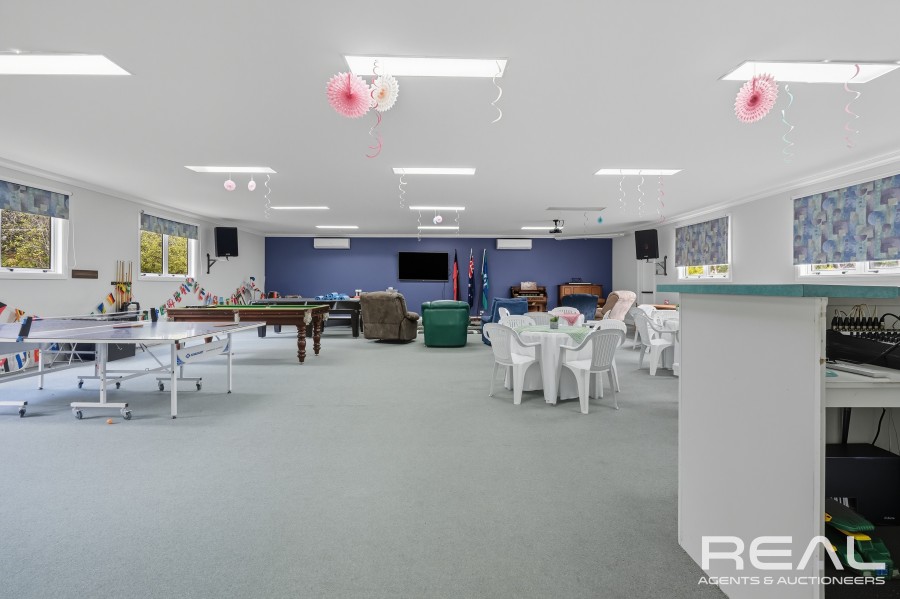The recreational Room - offers versatility as a generous conference or event space, complete with 75cm Flat Screen TV, Pool Table, Table Tennis Table, Air Hockey Table, Drum Kit, Piano and numerous other entertainment items. It also offers a reception/sitting room, an office, a storage room and bathroom facilities. A Defibrillator is available in the entry for easy access in the case of an emergency.