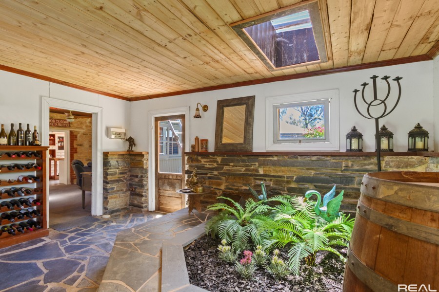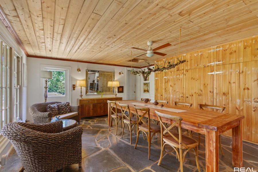 The gallery showcases spectacular slate flooring and large built-in cupboards for storage. A ceiling fan and colonial windows set the tone for an entertainer's paradise, comfortably accommodating a 10-12-seater dining table. An indoor garden area, skylight, and wall heater are welcome additions.