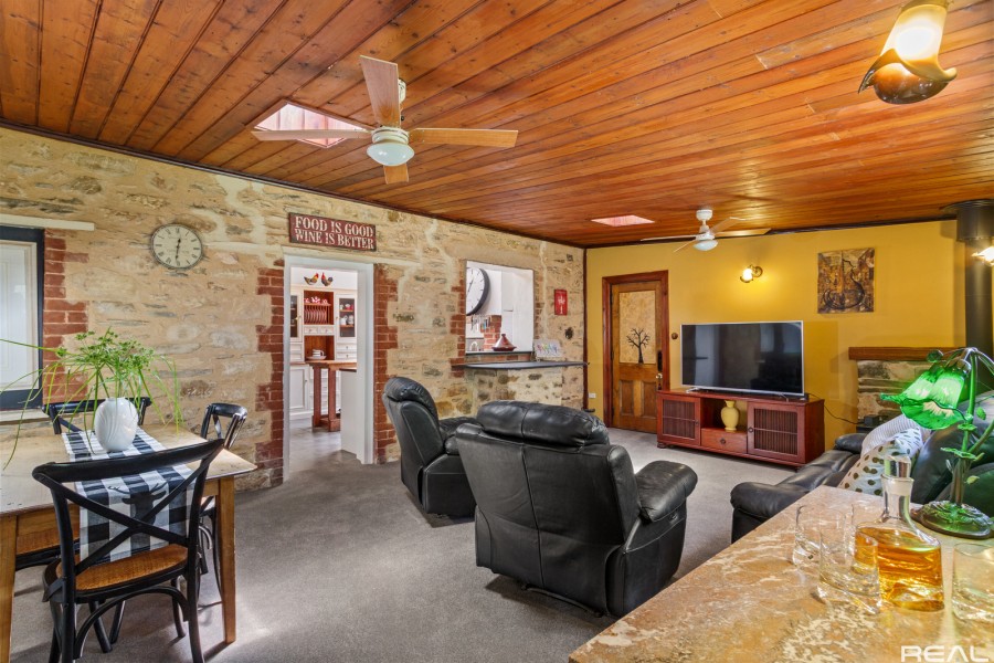 A rear verandah at the back of the house is ideal for balmy evenings spent sipping a port while reflecting on the day's activities among the many wineries that dot the district. Additionally, there are three heritage stables at the rear with slate floors and walls, providing undercover parking for 5-6 vehicles.